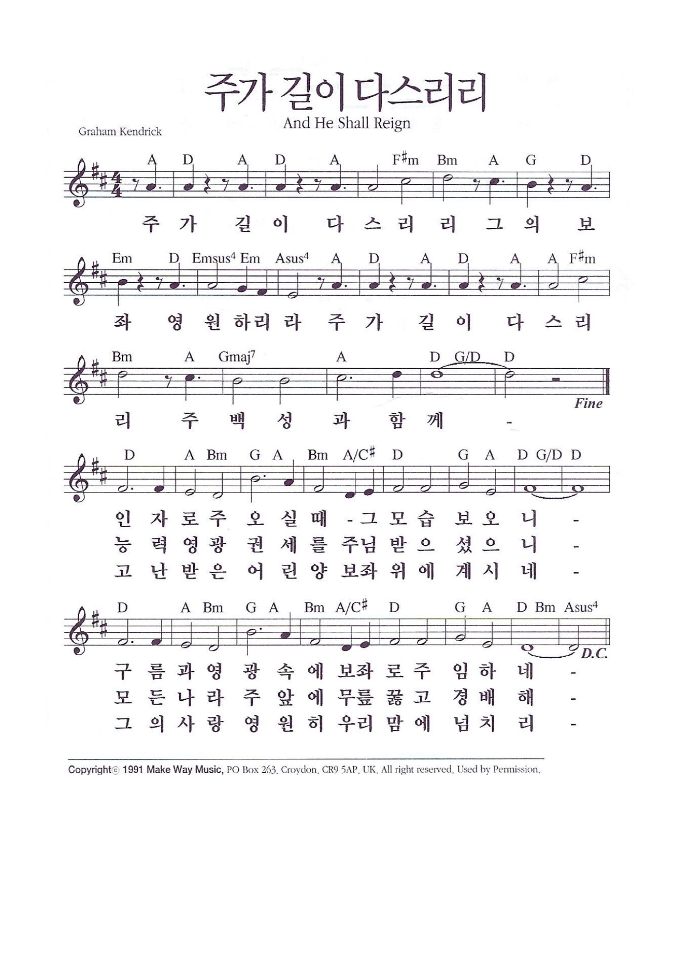 주가 길이 다스리리 주 백성과 함께