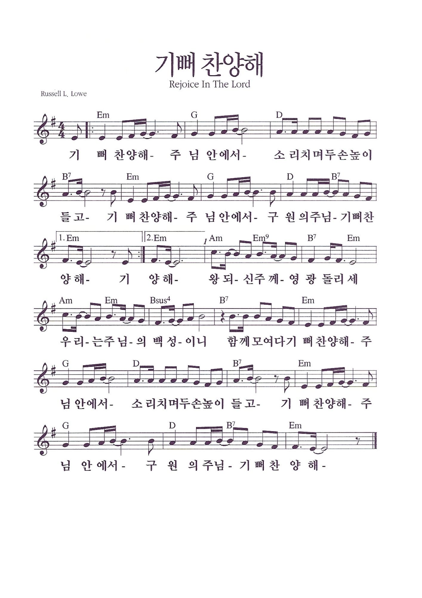 기뻐 찬양해 주님 안에서 구원의 주님 기뻐 찬양해