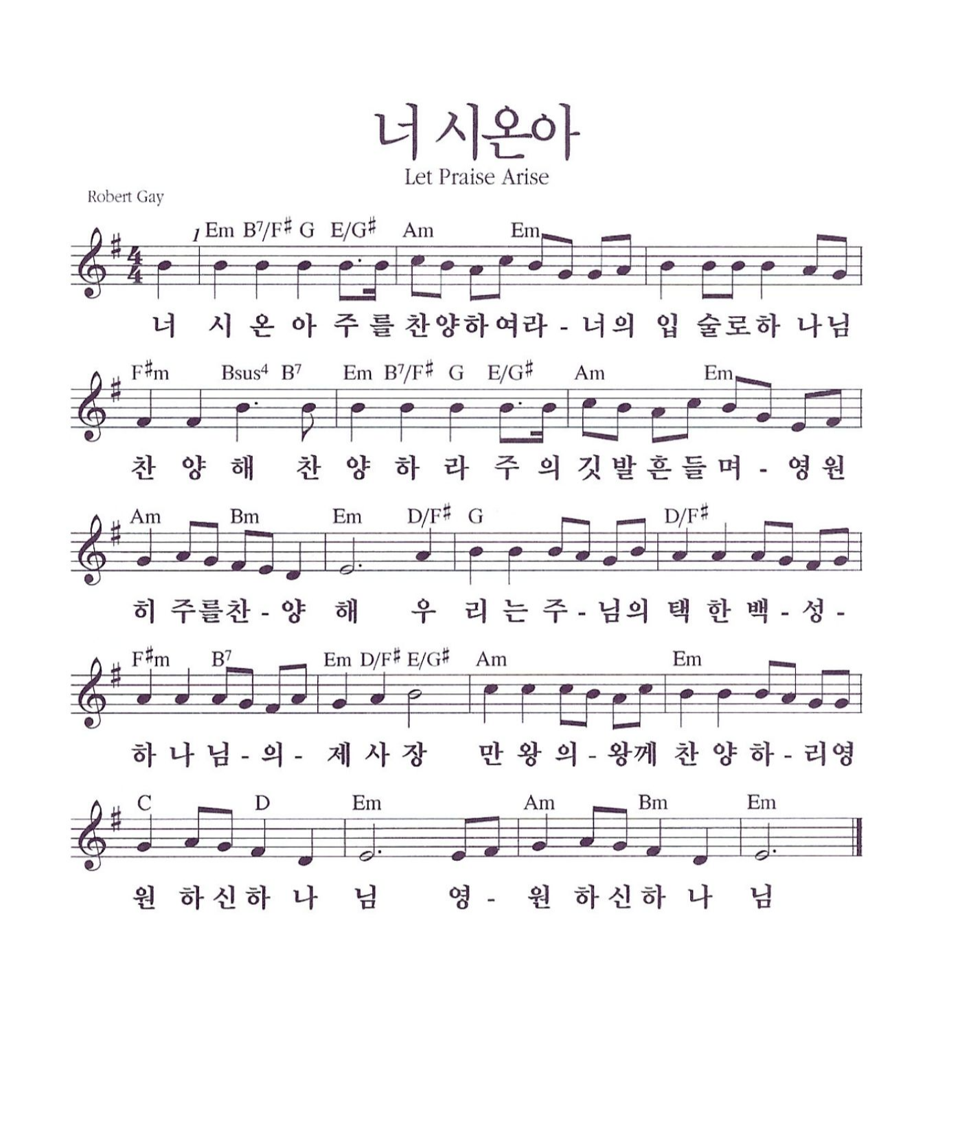 너 시온아 주를 찬양하여라