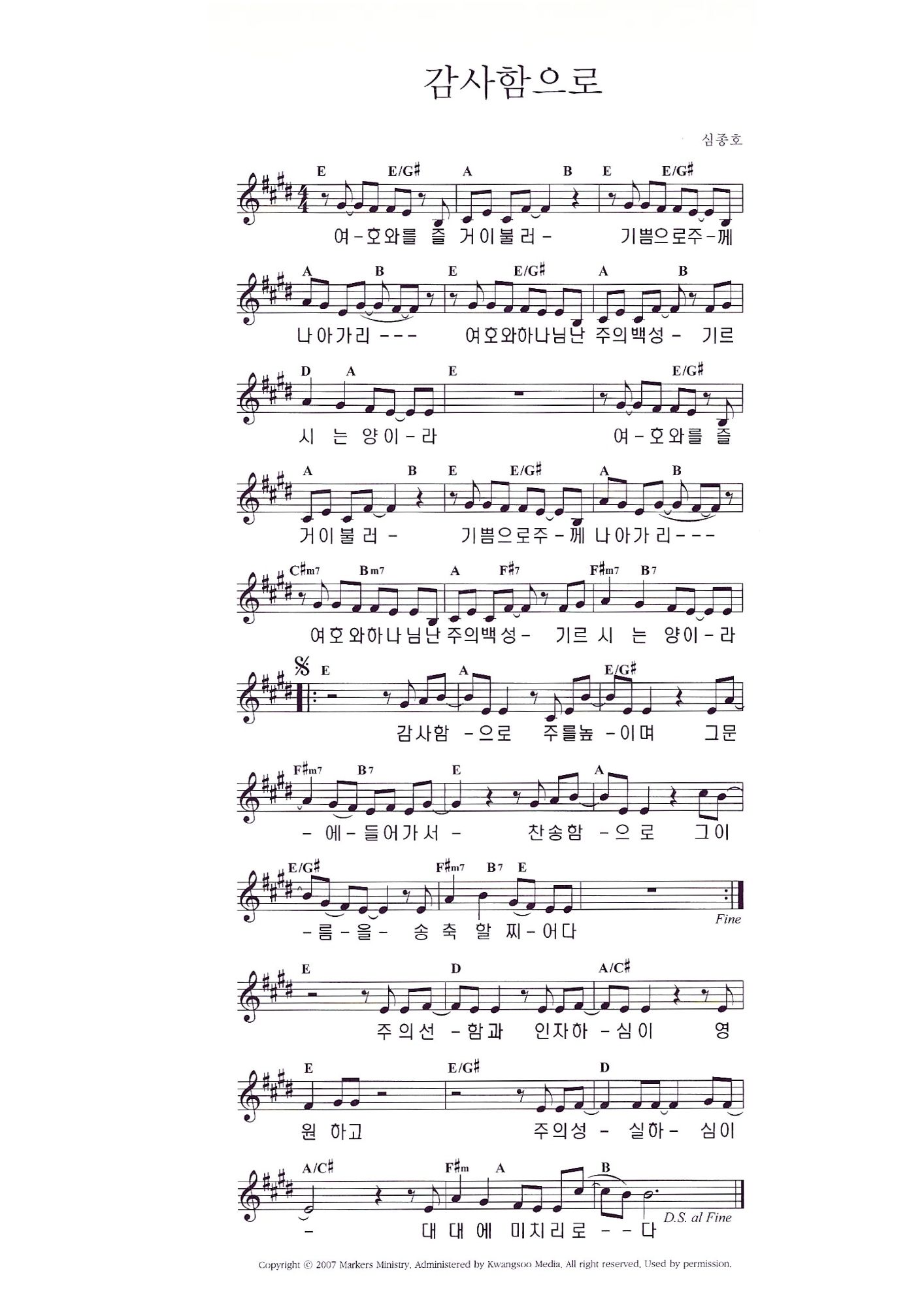 감사함으로 주를 높이며