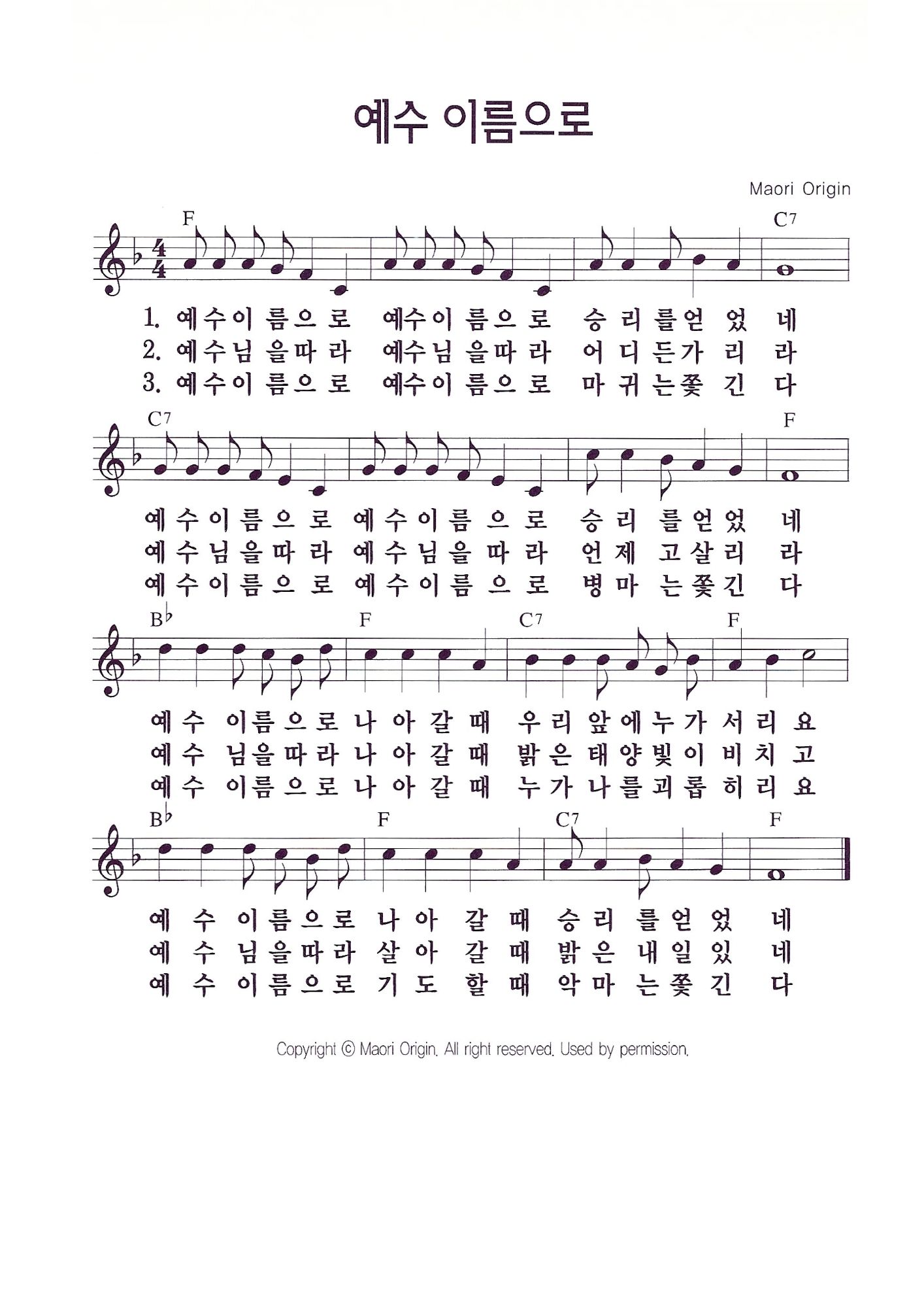 1. 예수 이름으로 예수 이름으로 승리를 얻었네