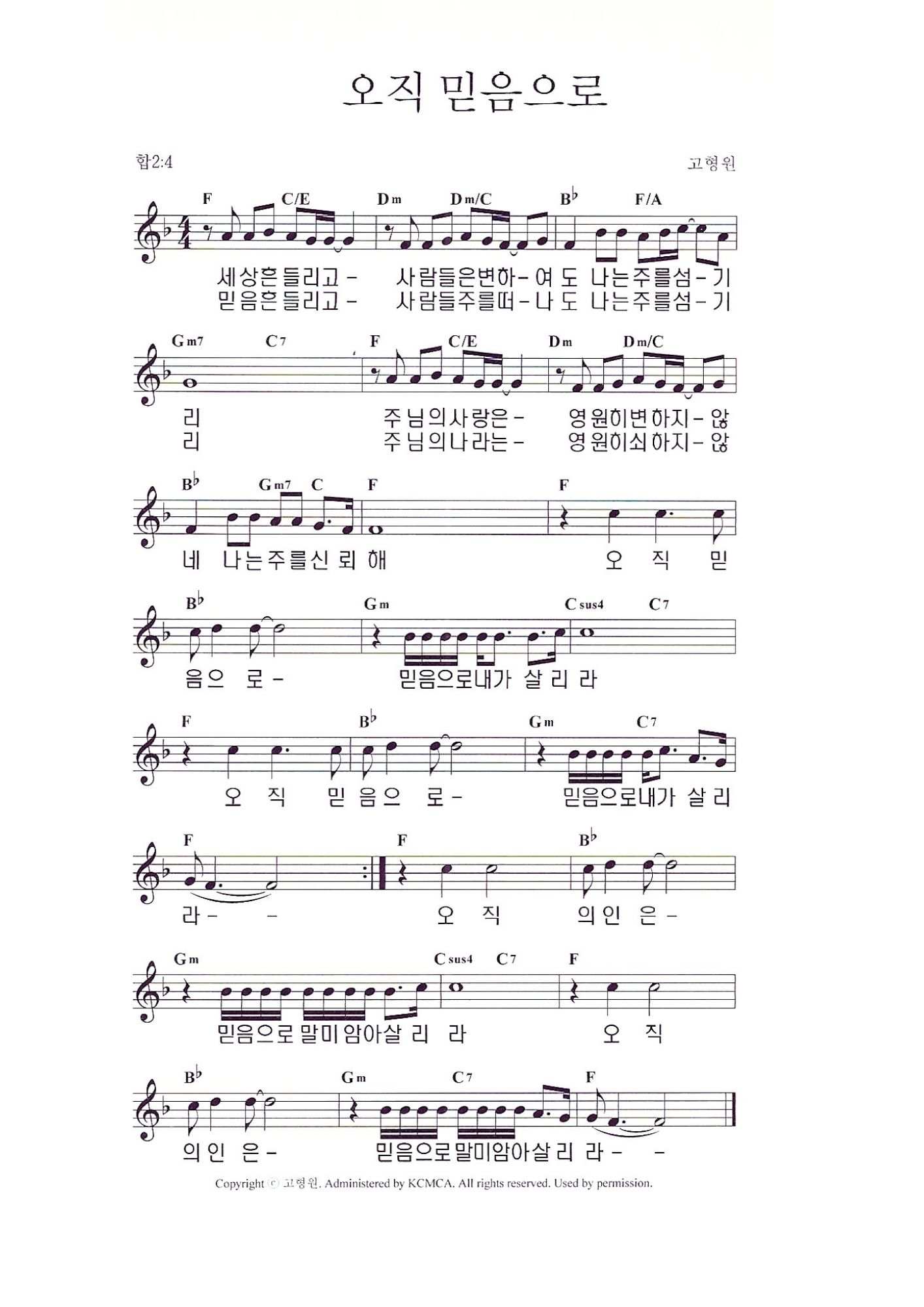 오직 믿음으로 믿음으로 내가 살리라